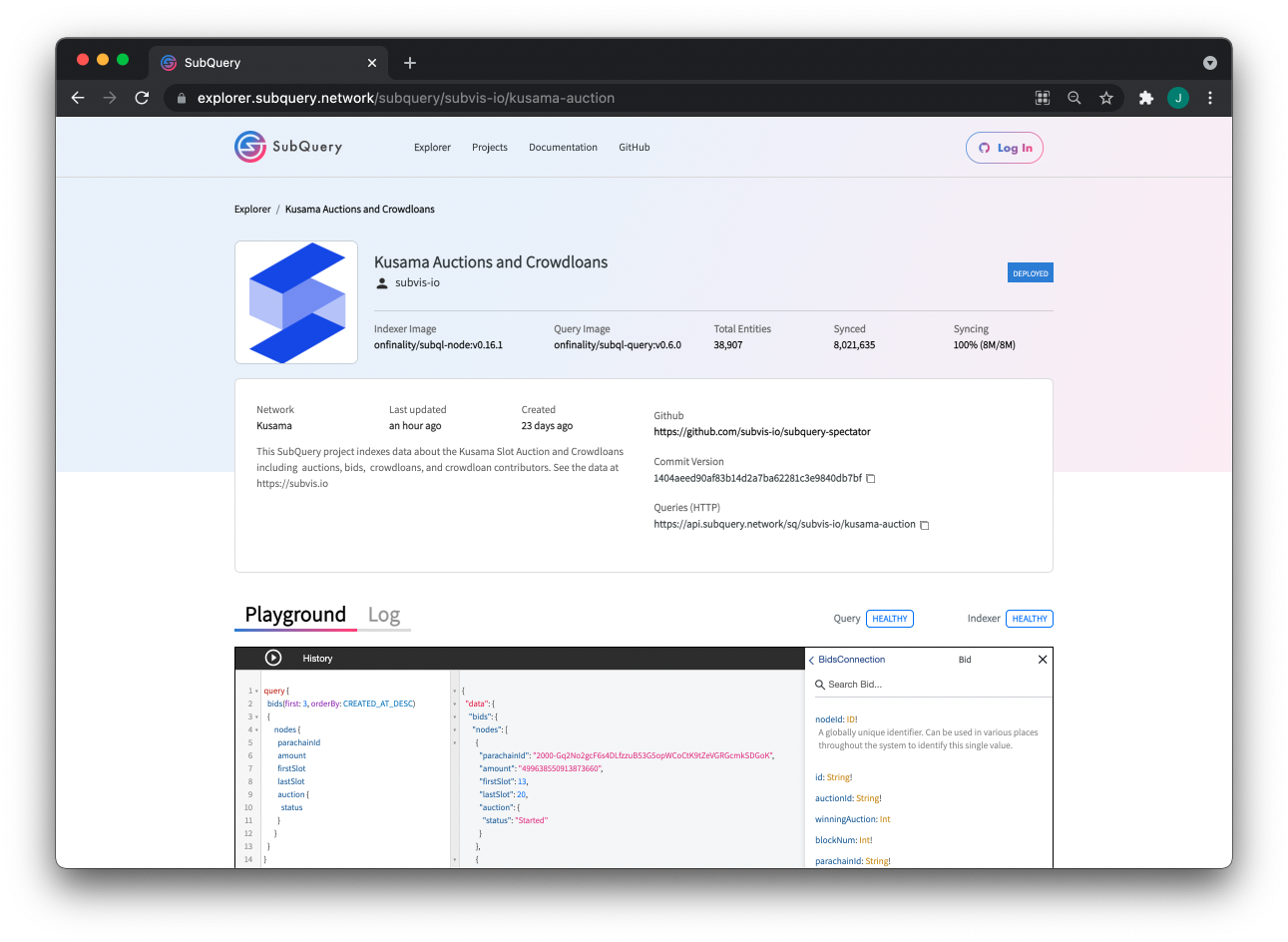Subvis.io is using SubQuery Projects to manage their own project and make updates as required. The indexing and query services for this service is completely managed by SubQuery and provided to the Polkadot community for free in SubQuery’s Explorer.