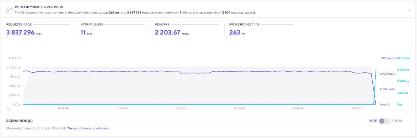 Having 156 registered indexers indexing two projects each gave us an awesome opportunity to run some stress tests against our test network --- the results blew us away! We've always designed the SubQuery to be the most performant, reliable and scalable decentralised infrastructure service out there, and we used load generators to simulate real GraphQL requests to prove this. Over five rounds of testing allowed us to reach a peak sustained load of 2,200 requests per second, which equates to almost 200 million requests each day! We did not see any significant increase in failure rates, and as we hit the limit on our load generators far before we reached the limit on the network we can be confident that the network can handle magnitudes more traffic than this test.