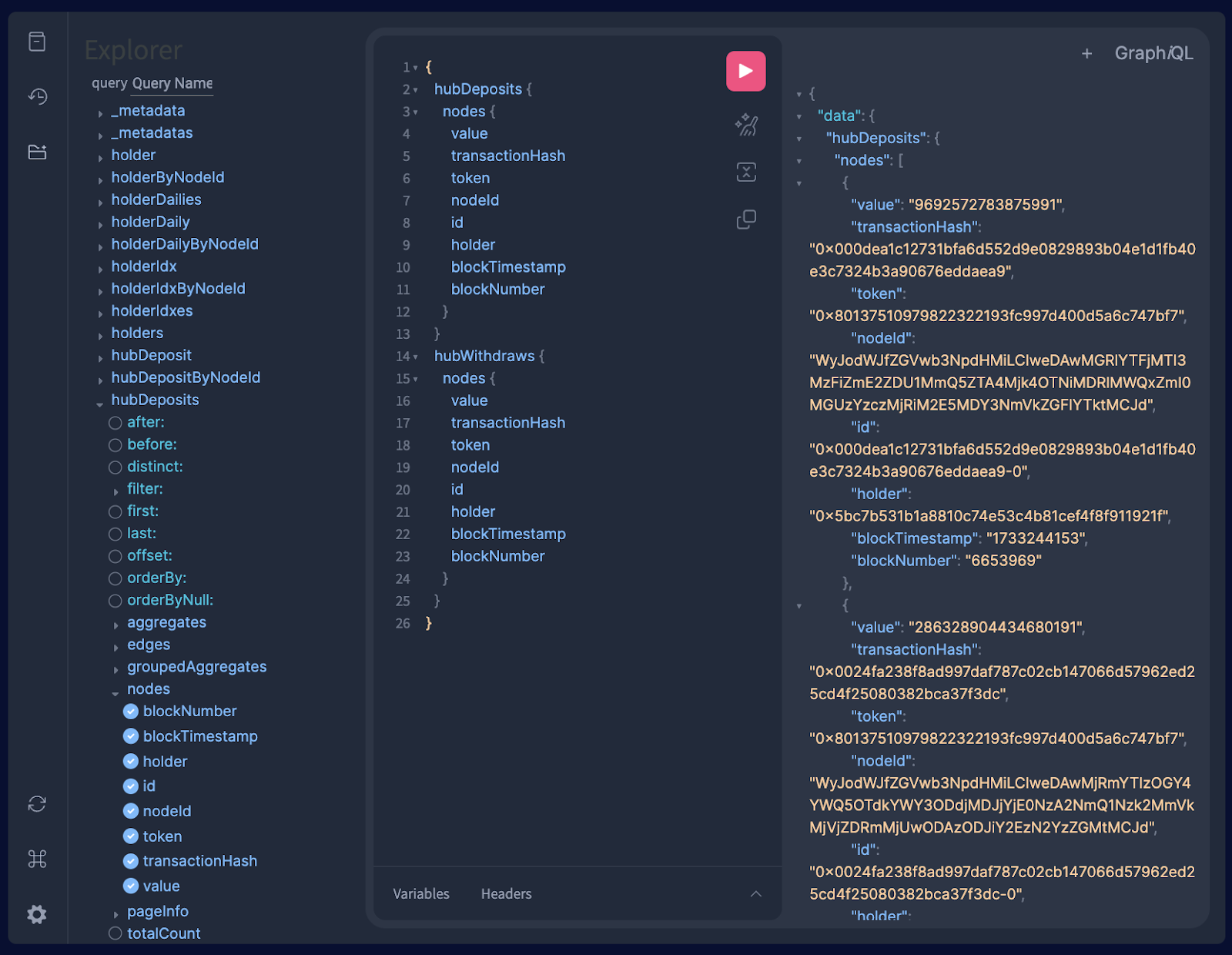 These queries reflect the power of SubQuery's API for blockchain indexing — essential infrastructure for tracking cross-chain assets, yield flows, and governance data.