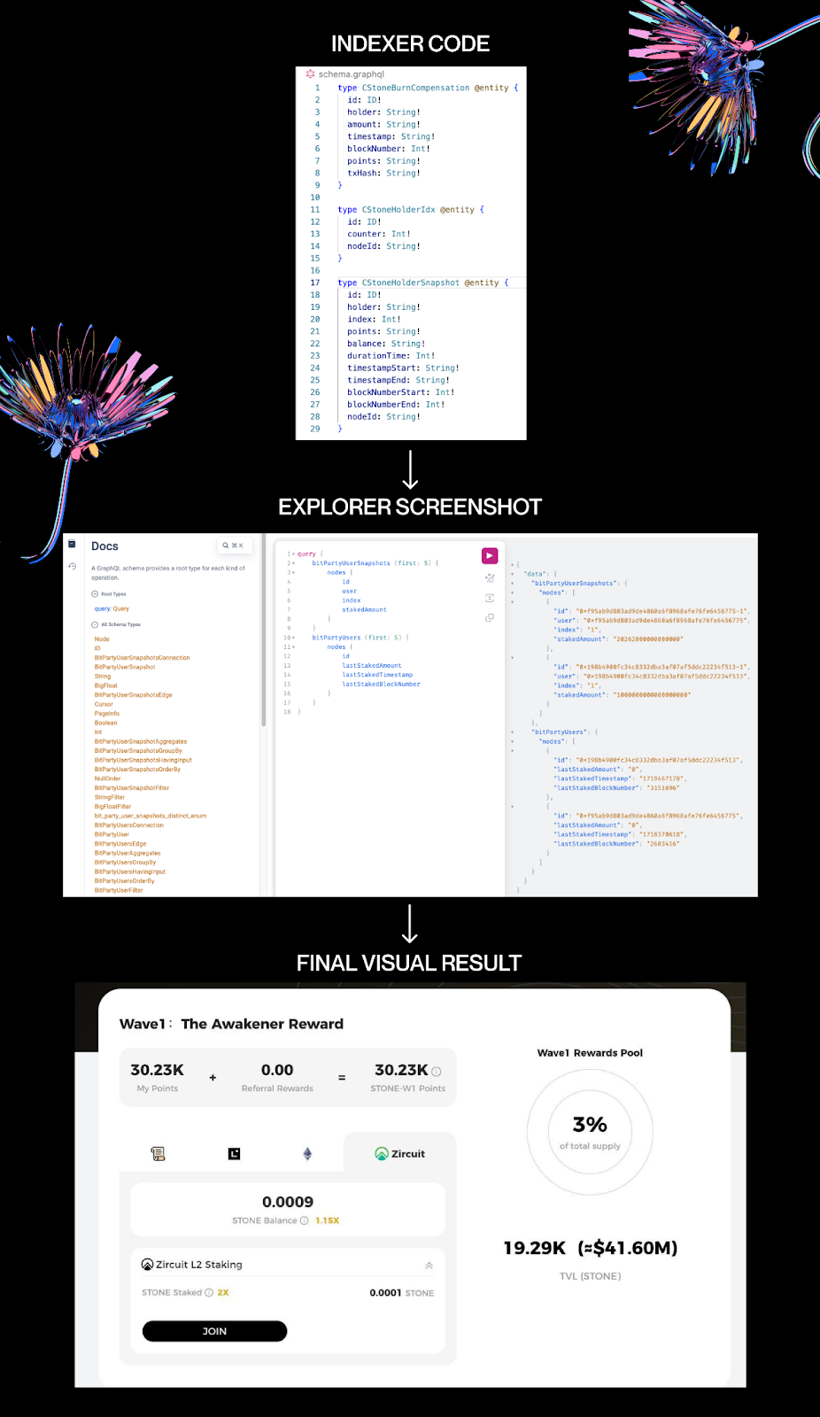 Initially, StakeStone explored different blockchain data indexing partners, but they encountered limitations in chain support and indexing performance. They needed a robust and flexible solution capable of handling data across multiple blockchain environments without compromising speed or accuracy.