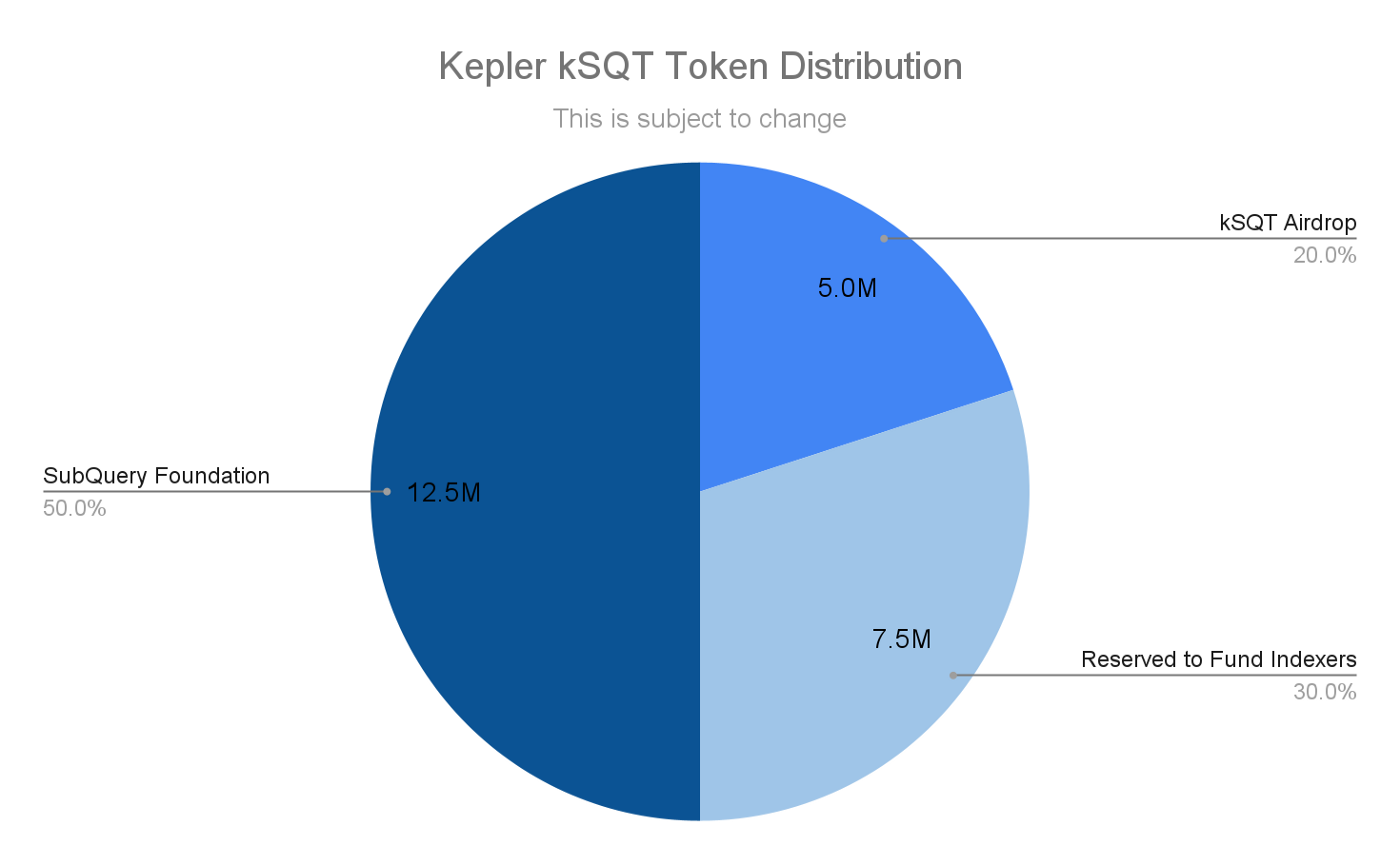 Kepler's kSQT token supply will be greatly simplified to reflect that it is a canary net and a precursor to the SubQuery Network. Remember, when the SubQuery Network is ready we will retire Kepler, and any kSQT will be burnable in exchange for SQT - in essence, kSQT is a future voucher for SQT.