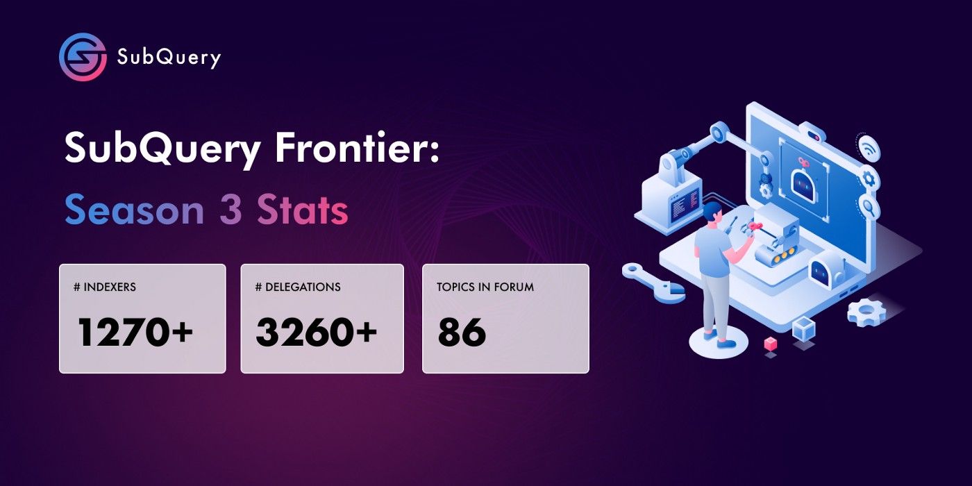Regardless, SubQuery is in an incredibly advantageous position today. We have a live product that is relied on by hundreds of partners across three Layer 1 ecosystems (Polkadot, Avalanche, and Cosmos). Our current SubQuery Frontier testnet is halfway through its third and final season with over 1,000 indexers indexing projects from three different chains in one decentralised data service.