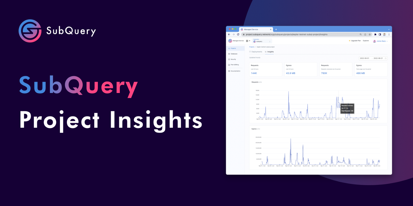 The release of the Project Insights page has been highly anticipated by our customers and has elevated the Managed Service to be more than just infrastructure hosting, it's now a complete service. Within one platform, you can reliably publish your latest creation, scale your app to thousands (if not millions) of users, and now view detailed analytics and insights on how your SubQuery Project is operating.