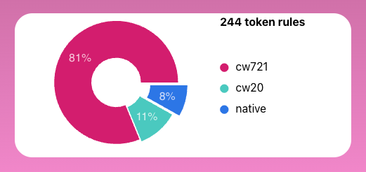 This pie chart, powered by SubQuery's indexing and aggregation of on-chain data, highlights the token rules set up by a guild admin when installing starrybot.