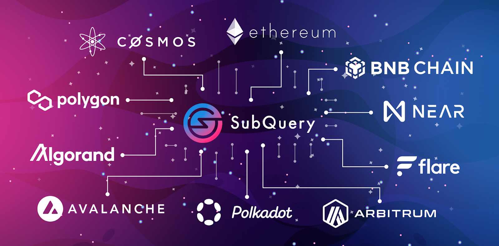 SubQuery is a blockchain developer toolkit facilitating the construction of Web3 applications of the future. A SubQuery project is a complete API to organise and query data from Layer-1 chains. Currently servicing Ethereum, Polygon, Arbitrum, BNB, NEAR, Polkadot, Avalanche, Algorand, Cosmos and Flare projects, this data-as-a-service allows developers to focus on their core use case and front-end without wasting time building a custom backend for data processing activities. In the future, the SubQuery Network intends to replicate this scalable and reliable solution in a completely decentralised manner.