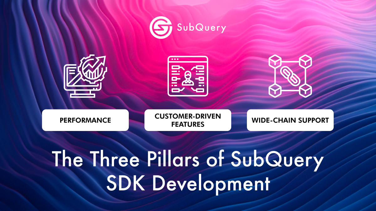 The three pillars of SubQuery SDK Development are performance, customer-driven features, and wide-chain support.