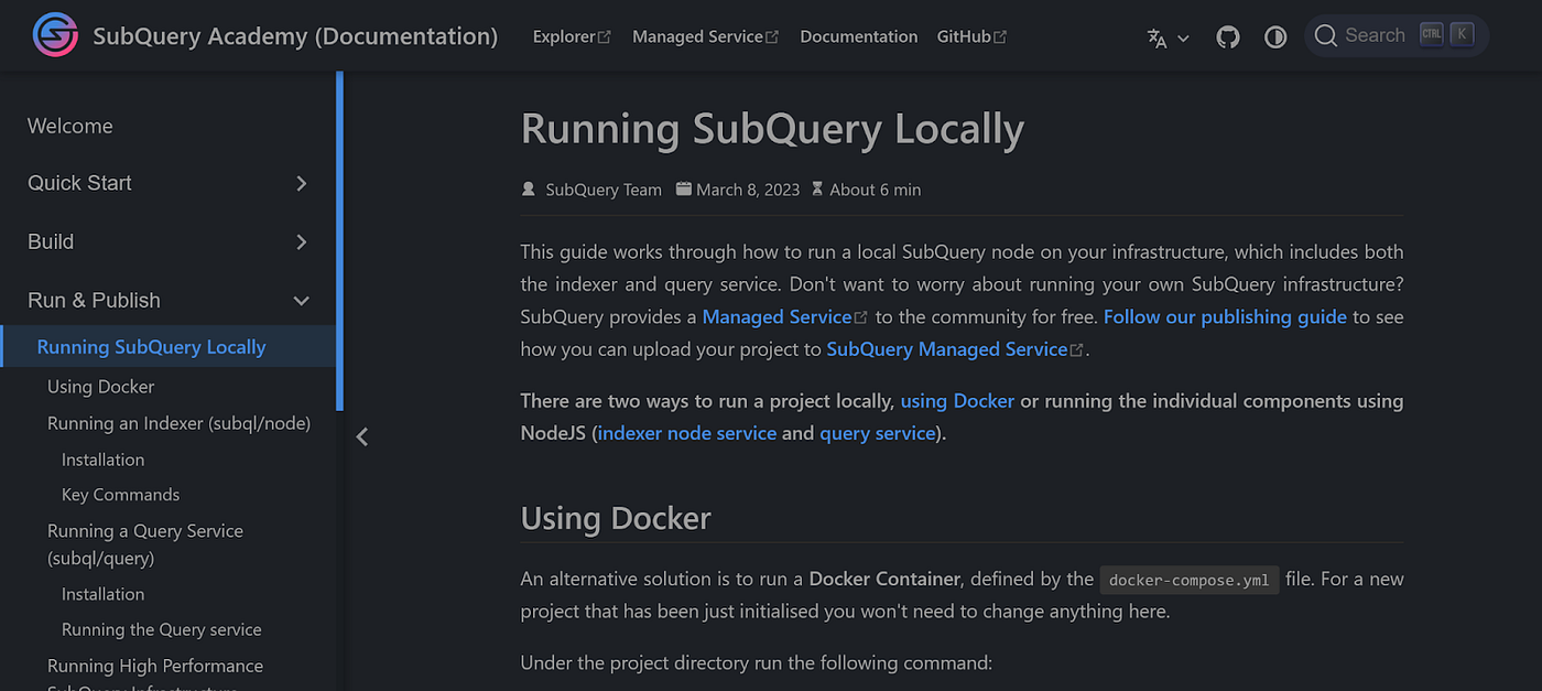 We’ve got a brand spanking new Documentation homepage for you! Take a peek at the improved Academy ➡ academy.subquery.network. The new Academy homepage: