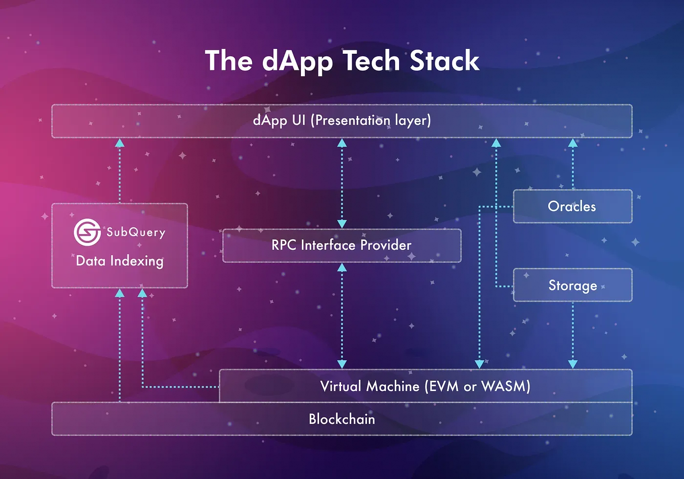 This is where things start to change compared to centralised applications -dApps rely on various technologies to function, and two important ones are storage providers and oracles.