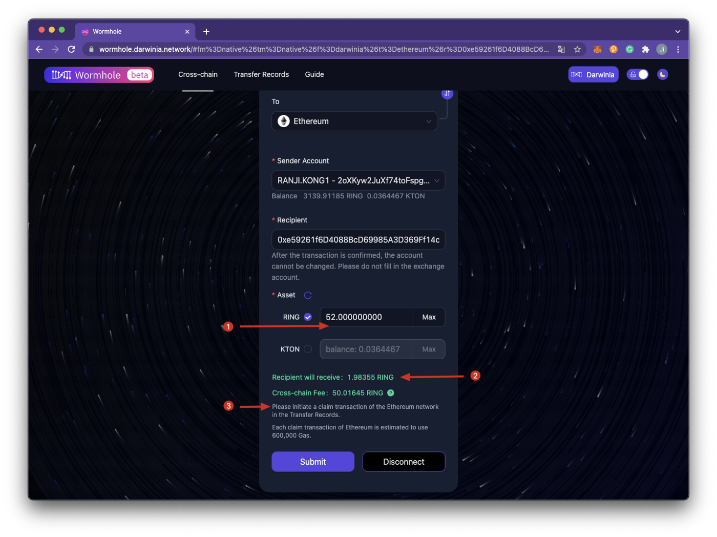 The first of many applications in Darwinia’s growing application ecosystem is the Wormhole app. Wormhole is an easy to use application that makes transferring assets between networks easy and is a key part of Darwinia’s cross chain strategy. Currently the bridge between Darwinia and Ethereum is operational. SubQuery is used to show historic transfers and events that have occurred on your Darwinia/Crab/Pangolin address related to the wormhole (e.g. the arrival of assets from another network).