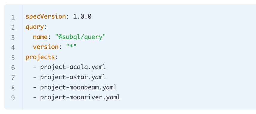 We’ve introduced a parent manifest that keeps track of what networks a given project manages. A single yarn codegen and yarn build command will automatically build all projects and types in each chain or network that is covered at the same time. Additionally, we’re working on an improved user experience for our Managed Service that will allow customers to better manage these projects themselves.