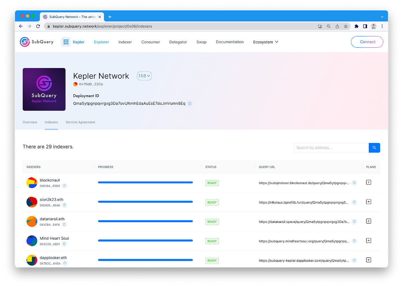The SubQuery Kepler App sources its data from decentralized SubQuery indexers, paying for it in kSQT, the native token of the Kepler network, to fuel the Kepler dashboard. This synergy between our powerful indexing capabilities and the Kepler network showcases the effectiveness and reliability of our tools, and the decentralised network that it runs on.